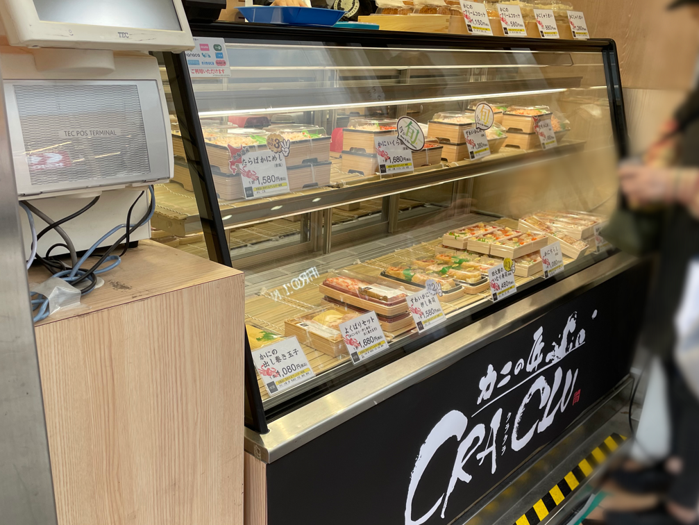 カニのお弁当とかお惣菜がいっぱい…