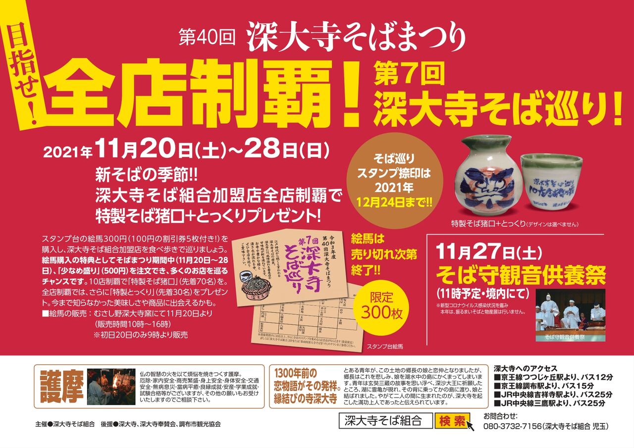 会 場:深大寺(調布市深大寺元町5-15-1)、深大寺そば組合加盟店